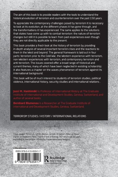 Preface Introduction, Jussi Hanhimäki and Bernhard Blumenau Part I: Terrorism Prior to the Cold War 1. The First Global Wave of Terrorism and International Counter-Terrorism, 1905-1914, Richard Bach Jensen 2. 'Methods which all civilized opinion must condemn'. The League of Nations and international action against terrorism, Charles Townshend 3. A blueprint for successfully fighting anarchist terror? Counter-terrorist communities of violence in Barcelona during the pistolerismo, Florian Grafl Part II: Western Experiences with Terrorism 4. The United Nations and West Germany's efforts against international terrorism in the 1970s, Bernhard Blumenau 5.The absent terrorism. Leftist political violence and the French state, 1968-1974, Markus Lammert 6. The Success of Italian Anti-Terrorism Policy, Tobias Hof 7.Quid pro quo: State sponsorship of terrorism in the Cold War, Thomas Riegler 8. The hijacking of TWA-847: A strategic analysis, Richard C. Thornton Part III: Non-Western Experiences with Terrorism 9. Bengal terrorism and the ambiguity of the Bengali muslims, Rashed Uz Zaman 10. SWAPO, the UN, and the struggle for national liberation, Shaloma Gauthier 11.The 'Claustre Affair': A hostage crisis, France and civil war in Chad, 1974-1977, Nathaniel Powell 12.Reagan and Libya: A history of pre-emptive strikes and (failed) regime change, Mattia Toaldo Part IV: Contemporary Terrorism and Anti-Terrorism 13. Al Qaeda and the reinvention of terrorism: Social sciences and the challenge of post-globalization transnational political violence, Mohammad-Mahmoud Ould Mohamedou 14. The US response to contemporary terrorism, Abraham R. Wagner 15. Terrorism in the twenty-first century: a new era of warfare, Sean N. Kalic Concluding Essay 16. The four waves of modern terror. International dimensions and consequences, David C. Rapoport