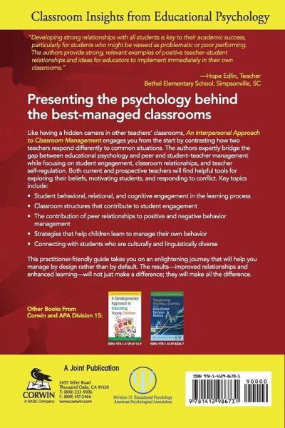 Presenting the psychology behind the best-managed classrooms The authors engage you from the start by contrasting how differently teachers respond to common situations. They expertly bridge the gap between educational psychology and classroom management from the perspectives of student engagement, peer and student-teacher relationships, and teacher self regulation. Both current and prospective teachers will find helpful tools for engaging difficult students, managing challenging relationships, and handling conflict. Key topics include: Student behavioral, relational, and cognitive engagement in the learning process Classroom structures that contribute to student engagement The contribution of peer relationships to positive and negative behavior management Strategies that help children learn to manage their own behavior Connecting with students who are culturally and linguistically diverse