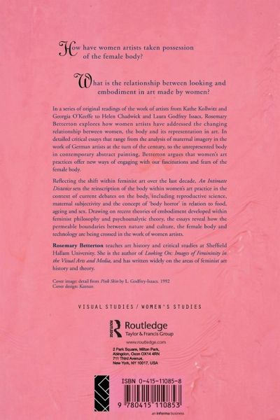 An Intimate Distance considers a wide range of visual images of women in the context of current debates which centre around the body, including reproductive science, questions of ageing and death and the concept of 'body horror' in relation to food, consumption and sex. A feminist reclamation of these images suggests how the permeable boundaries between the female body and technology, nature and culture are being crossed in the work of women artists.