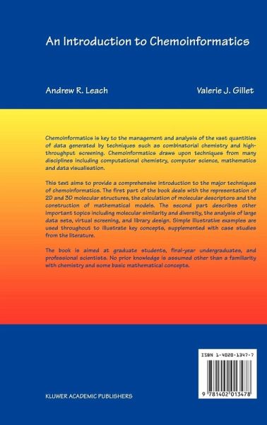This, the first text written specifically for this field, aims to provide an introduction to the major techniques of chemoinformatics. The first part of the book deals with the representation of 2D and 3D molecular structures, the calculation of molecular descriptors and the construction of mathematical models. The second part describes other important topics including molecular similarity and diversity, the analysis of large data sets, virtual screening, and library design. Simple illustrative examples are used throughout to illustrate key concepts, supplemented with case studies from the literature.