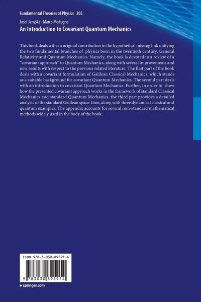 This book deals with an original contribution to the hypothetical missing link unifying the two fundamental branches of physics born in the twentieth century, General Relativity and Quantum Mechanics. Namely, the book is devoted to a review of a "covariant approach" to Quantum Mechanics, along with several improvements and new results with respect to the previous related literature. The first part of the book deals with a covariant formulation of Galilean Classical Mechanics, which stands as a suitable background for covariant Quantum Mechanics. The second part deals with an introduction to…mehr