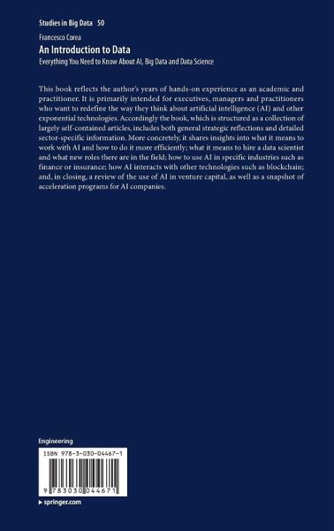 This book reflects the author's years of hands-on experience as an academic and practitioner. It is primarily intended for executives, managers and practitioners who want to redefine the way they think about artificial intelligence (AI) and other exponential technologies. Accordingly the book, which is structured as a collection of largely self-contained articles, includes both general strategic reflections and detailed sector-specific information. More concretely, it shares insights into what it means to work with AI and how to do it more efficiently; what it means to hire a data scientist and what new roles there are in the field; how to use AI in specific industries such as finance or insurance; how AI interacts with other technologies such as blockchain; and, in closing, a review of the use of AI in venture capital, as well as a snapshot of acceleration programs for AI companies.