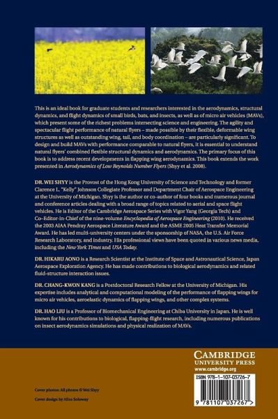 This is an ideal book for graduate students and researchers interested in the aerodynamics, structural dynamics and flight dynamics of small birds, bats and insects, as well as of micro air vehicles (MAVs), which present some of the richest problems intersecting science and engineering. The agility and spectacular flight performance of natural flyers, thanks to their flexible, deformable wing structures, as well as to outstanding wing, tail and body coordination, is particularly significant. To design and build MAVs with performance comparable to natural flyers, it is essential that natural flyers' combined flexible structural dynamics and aerodynamics are adequately understood. The primary focus of this book is to address the recent developments in flapping wing aerodynamics. This book extends the work presented in Aerodynamics of Low Reynolds Number Flyers (Shyy et al. 2008).