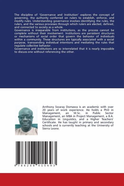 The discipline of 'Governance and Institution' explores the concept of governing, the authority conferred on rulers to establish, enforce, and modify rules. Understanding governance involves identifying the rules, the rulers, and the various processes through which rulers are elected, defined, and connected to society as a whole.Governance is inseparable from institutions, as the process cannot be complete without their involvement. Institutions are persistent structures or mechanisms of social order that govern the behavior of individuals within a community. These structures are typically associated with a social purpose, transcending individual intentions and mediating the rules that regulate collective behavior.Governance and institutions are so interrelated that it is nearly impossible to discuss one without referencing the other.