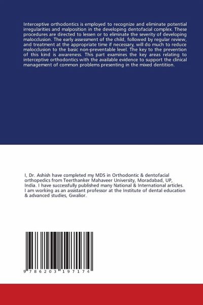 Interceptive orthodontics is employed to recognize and eliminate potential irregularities and malposition in the developing dentofacial complex. These procedures are directed to lessen or to eliminate the severity of developing malocclusion. The early assessment of the child, followed by regular review, and treatment at the appropriate time if necessary, will do much to reduce malocclusion to the basic non-preventable level. The key to the prevention of this kind is awareness. This part examines the key areas relating to interceptive orthodontics with the available evidence to support the clinical management of common problems presenting in the mixed dentition.