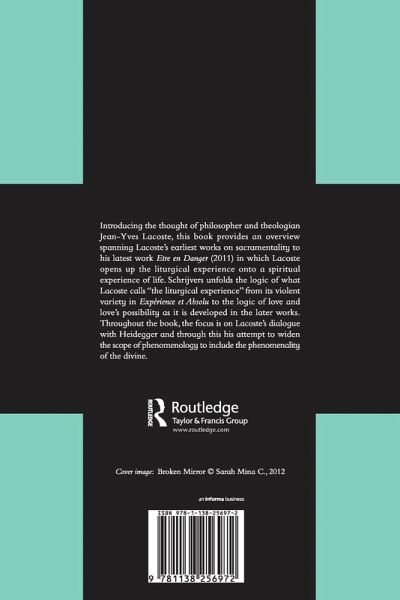 Introducing the thought of philosopher and theologian Jean-Yves Lacoste, this book provides an overview spanning Lacoste's earliest works on sacramentality to his latest work Etre en Danger (2011) in which Lacoste opens up the liturgical experience onto a spiritual experience of life. Schrijvers unfolds the logic of what Lacoste calls 'the liturgical experience' from its violent variety in Expérience et Absolu to the logic of love and love's possibility as it is developed in the later works. Throughout the book, the focus is on Lacoste's dialogue with Heidegger and through this his attempt to widen the scope of phenomenology to include the phenomenality of the divine.