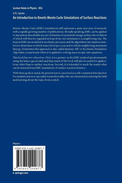 "The author uses the kinetic Monte Carlo (kMC) method to examine surface reactions. ... The author formulates two goals of this book. The first one is to show that the kMC method can also be applied to phenomena other than surface reactions. Secondly, the reader is informed of what kind of surface-reaction kinetics could be examined with the help of kMC simulations. The book will be of interest to students and newcomers in the field of surface reactions." (A. V. Fedorov, zbMATH, Vol. 1272, 2013)