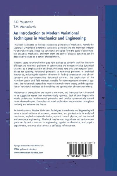 This book is devoted to the basic variational principles of mechanics: the Lagrange-D'Alembert differential variational principle and the Hamilton integral variational principle. These two variational principles form the main subject of contemporary analytical mechanics, and from them the whole colossal corpus of classical dynamics can be deductively derived as a part of physical theory. In recent years students and researchers of engineering and physics have begun to realize the utility of variational principles and the vast possi bilities that they offer, and have applied them as a powerful tool for the study of linear and nonlinear problems in conservative and nonconservative dynamical systems. The present book has evolved from a series of lectures to graduate stu dents and researchers in engineering given by the authors at the Depart ment of Mechanics at the University of Novi Sad Serbia, and numerous foreign universities. The objective of the authors has been to acquaint thereader with the wide possibilities to apply variational principles in numerous problems of contemporary analytical mechanics, for example, the Noether theory for finding conservation laws of conservative and nonconservative dynamical systems, application of the Hamilton-Jacobi method and the field method suitable for nonconservative dynamical systems,the variational approach to the modern optimal control theory, the application of variational methods to stability and determining the optimal shape in the elastic rod theory, among others.
