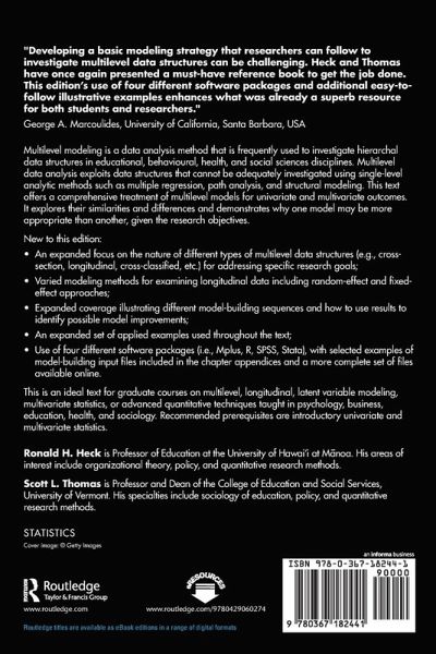 Ronald H. Heck is Professor of Education at the University of Hawai'i at M¿noa. His areas of interest include organizational theory, policy, and quantitative research methods. Scott L. Thomas is Professor and Dean of the College of Education and Social Services, University of Vermont. His specialties include sociology of education, policy, and quantitative research methods