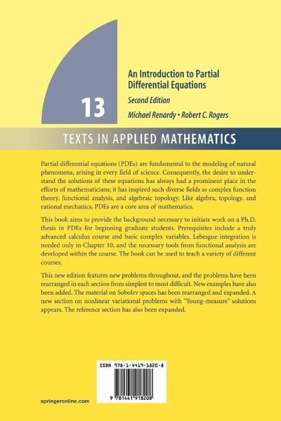 From the reviews of the second edition: "This second edition of the book from 1993 is still one of the most modern books about PDEs. ... There is a number of ... new examples and exercises, or new sections about Sobolev spaces and nonlinear variational problems. The book is written very well and can be strongly recommended as a textbook for a number of PDE courses. The presentation of a number of subjects is the best available in the literature." (G. Schneider, Zeitschrift für Angewandte Mathematik und Mechanik, Vol. 84(10-11), 2004) "An Introduction to Partial Differential Equations (2nd ed.) is a very careful exposition of functional analytic methods applied to PDEs. ... a self-contained text that can be used as the basis of an advanced course in PDEs or as an excellent guide for self-study by a motivated reader. ... acts and feels like a standard book in a specific area of mathematics. ... The Renardy and Rogers text contains a large number of problems ... . For students, these problems will be challenging and interesting. ... is a great book." (Ronald B. Guenther, Enrique A. Thomann, SIAM Reviews, Vol. 47(1), 2005) "The purpose of this book is to put the topic of differential equations on the same footing in the graduate curriculum as algebra and analysis. ... the authors describe it as a book for three or four semesters. ... they succeed admirably. The book is extremely well-written with lots of examples and motivation for the theory." (Gary M. Lieberman, Zentralblatt MATH, Vol. 1072, 2005)
