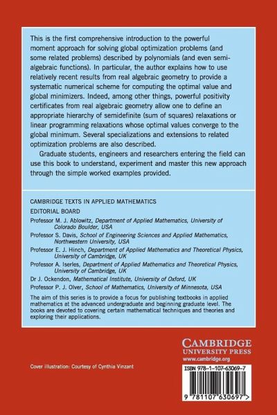 Preface List of symbols 1. Introduction and messages of the book Part I. Positive Polynomials and Moment Problems: 2. Positive polynomials and moment problems 3. Another look at nonnegativity 4. The cone of polynomials nonnegative on K Part II. Polynomial and Semi-algebraic Optimization: 5. The primal and dual points of view 6. Semidefinite relaxations for polynomial optimization 7. Global optimality certificates 8. Exploiting sparsity or symmetry 9. LP relaxations for polynomial optimization 10. Minimization of rational functions 11. Semidefinite relaxations for semi-algebraic optimization 12. An eigenvalue problem Part III. Specializations and Extensions: 13. Convexity in polynomial optimization 14. Parametric optimization 15. Convex underestimators of polynomials 16. Inverse polynomial optimization 17. Approximation of sets defined with quantifiers 18. Level sets and a generalization of the Löwner-John's problem Appendix A. Semidefinite programming Appendix B. The GloptiPoly software References Index.