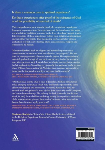 This comprehensive new introduction looks at spiritual experiences from past to present, from the experiences of the founders of the major world religious traditions to events in the lives of ordinary people today. Mystical and Near Death Experiences are included. Examples are drawn from a variety of sources, including original accounts from the Alister Hardy Religious Experience Research Centre Archive at the University of Wales, Lampeter as well as many given to the author in person. Interpretations of these experiences follow, from religious, philosophical and scientific viewpoints. Various questions are considered. Is there a common core to spiritual experience? Do these experiences offer proof of the existence of God or of the possibility of survival of death? This fascinating work concludes with an evaluation of what can be learned about consciousness, religion and what it is to be human.