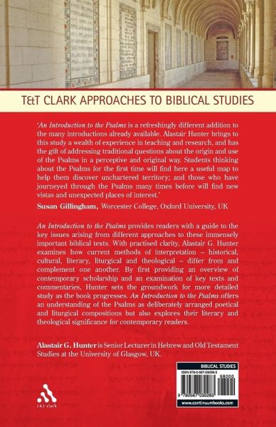 This introduction to the Psalms introduces readers to some of the key issues arising from different approaches to the biblical text. Alastair G. Hunter examines how current methods of interpretation - historical/cultural, literary, liturgical and theological - differ and complement each other. He provides an overview of contemporary scholarship (including the significance of the Dead Sea Scrolls Psalms) and examines some of the key texts and commentaries in use today. The book offers a way in to a more detailed and more advanced Psalms study, and includes particular emphasis on literary and liturgical matters, which are often left out of traditional commentaries. Hunter seeks to do two things: to understand the psalms in themselves as deliberately arranged poetical and liturgical compositions; and to explore their literary and theological significance for contemporary readers. He considers the increasing body of work relating to groups of psalms, and reviews the results to date of that approach, which helps the reader to see the psalms as a more coherent collection of texts, and has implications for their exegesis and interpretation.