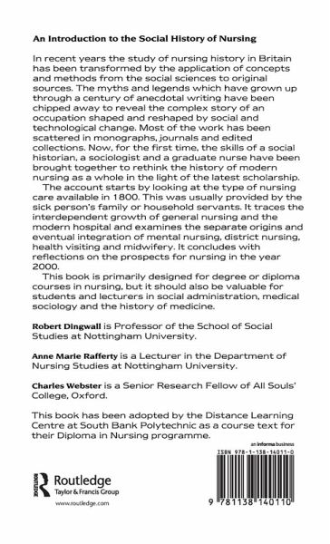 Combining the skills of a social historian, a sociologist and a graduate nurse, this book traces the history of nursing from 1800 and speculates on the future of nursing in the year 2000.