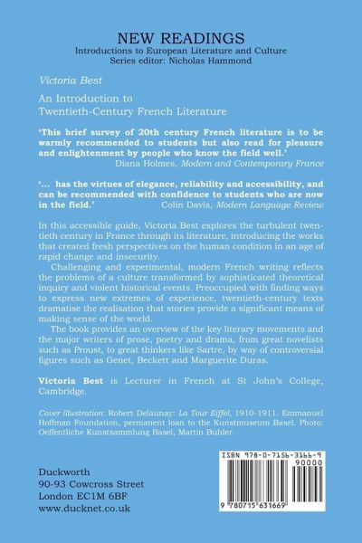 In this accessible guide, Victoria Best explores the turbulent twentieth century in France through its literature, introducing the works that created fresh perspectives on the human condition in an age of rapid change and insecurity. Challenging and experimental, modern French writing reflects the problems of a culture transformed by sophisticated theoretical inquiry and violent historical events. Preoccupied with finding ways to express new extremes of experience, twentieth-century texts dramatise the realisation that stories provide a significant means of making sense of the world. The book provides an overview of the key literary movements and the major writers of prose, poetry and drama, from great novelists such as Proust, to great thinkers like Sartre, by way of controversial figures such as Genet, Beckett and Marguerite Duras.