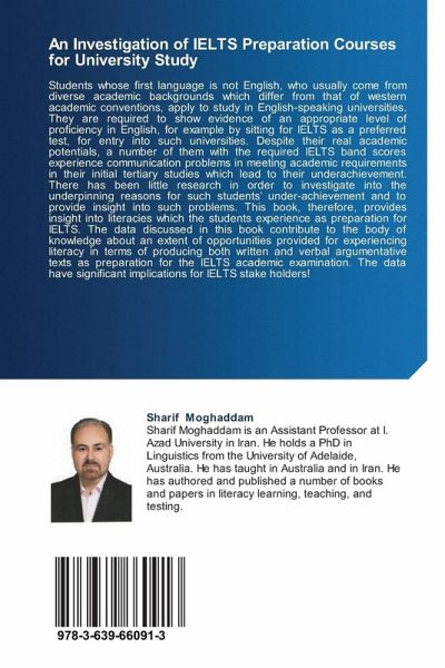 Students whose first language is not English, who usually come from diverse academic backgrounds which differ from that of western academic conventions, apply to study in English-speaking universities. They are required to show evidence of an appropriate level of proficiency in English, for example by sitting for IELTS as a preferred test, for entry into such universities. Despite their real academic potentials, a number of them with the required IELTS band scores experience communication problems in meeting academic requirements in their initial tertiary studies which lead to their underachievement. There has been little research in order to investigate into the underpinning reasons for such students under-achievement and to provide insight into such problems. This book, therefore, provides insight into literacies which the students experience as preparation for IELTS. The data discussed in this book contribute to the body of knowledge about an extent of opportunities provided for experiencing literacy in terms of producing both written and verbal argumentative texts as preparation for the IELTS academic examination. The data have significant implications for IELTS stake holders!