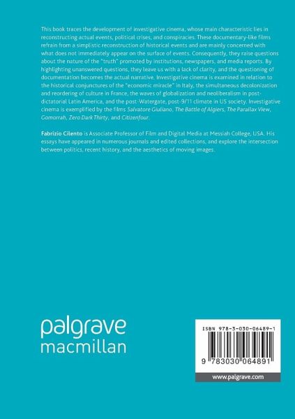 This book traces the development of investigative cinema, whose main characteristic lies in reconstructing actual events, political crises, and conspiracies. These documentary-like films refrain from a simplistic reconstruction of historical events and are mainly concerned with what does not immediately appear on the surface of events. Consequently, they raise questions about the nature of the "truth" promoted by institutions, newspapers, and media reports. By highlighting unanswered questions, they leave us with a lack of clarity, and the questioning of documentation becomes the actual narrative. Investigative cinema is examined in relation to the historical conjunctures of the "economic miracle" in Italy, the simultaneous decolonization and reordering of culture in France, the waves of globalization and neoliberalism in post-dictatorial Latin America, and the post-Watergate, post-9/11 climate in US society. Investigative cinema is exemplified by the films Salvatore Giuliano, The Battle of Algiers, The Parallax View, Gomorrah, Zero Dark Thirty, and Citizenfour.