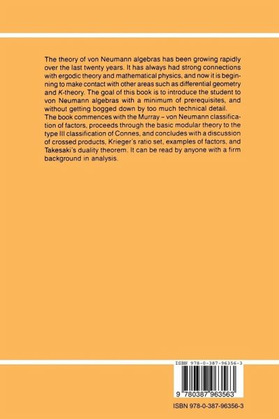 Why This Book: The theory of von Neumann algebras has been growing in leaps and bounds in the last 20 years. It has always had strong connections with ergodic theory and mathematical physics. It is now beginning to make contact with other areas such as differential geometry and K-Theory. There seems to be a strong case for putting together a book which (a) introduces a reader to some of the basic theory needed to appreciate the recent advances, without getting bogged down by too much technical detail; (b) makes minimal assumptions on the reader's background; and (c) is small enough in size to not test the stamina and patience of the reader. This book tries to meet these requirements. In any case, it is just what its title proclaims it to be -- an invitation to the exciting world of von Neumann algebras. It is hoped that after perusing this book, the reader might be tempted to fill in the numerous (and technically, capacious) gaps in this exposition, and to delve further into the depths of the theory. For the expert, it suffices to mention here that after some preliminaries, the book commences with the Murray - von Neumann classification of factors, proceeds through the basic modular theory to the III). classification of Connes, and concludes with a discussion of crossed-products, Krieger's ratio set, examples of factors, and Takesaki's duality theorem.