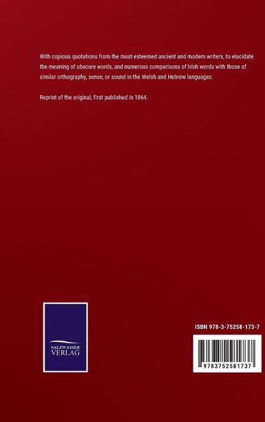 Reprint of the original, first published in 1864. With copious quotations from the most esteemed ancient and modern writers, to elucidate the meaning of obscure words, and numerous comparisons of Irish words with those of similar orthography, sense, or sound in the Welsh and Hebrew languages.