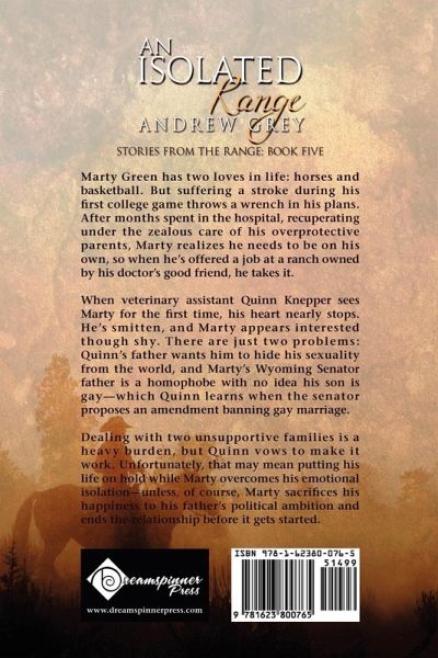 Stories from the Range: Book Five Marty Green has two loves in life: horses and basketball. But suffering a stroke during his first college game throws a wrench in his plans. After months spent in the hospital, recuperating under the zealous care of his overprotective parents, Marty realizes he needs to be on his own, so when he's offered a job at a ranch owned by his doctor's good friend, he takes it. When veterinary assistant Quinn Knepper sees Marty for the first time, his heart nearly stops. He's smitten, and Marty appears interested though shy. There are just two problems: Quinn's father wants him to hide his sexuality from the world, and Marty's Wyoming Senator father is a homophobe with no idea his son is gay-which Quinn learns when the senator proposes an amendment banning gay marriage. Dealing with two unsupportive families is a heavy burden, but Quinn vows to make it work. Unfortunately, that may mean putting his life on hold while Marty overcomes his emotional isolation-unless, of course, Marty sacrifices his happiness to his father's political ambition and ends the relationship before it gets started.