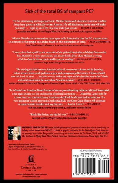 Sick of the total BS of rampant PC? This brazen, furiously funny book is the antidote to today's poison of political correctness. With humor and chutzpah, attorney, commentator, and popular radio host Michael Smerconish takes on today's oversensitive culture with a collection of entertaining, outlandish anecdotes about PC gone wild-stories that are hilarious, horrifying, and unbelievably true. Why are sports leagues handing out trophies to losers? Why are little old grandmas hired to guard 200-pound prisoners? Why are newborn babies and old men with walkers singled out at the airport while likely terrorists are ushered through security with ease? This book shows through these absurdities that today's atmosphere of censorship and multiculturalism is paving the way for serious threats to our cultural identity and national security: "It's one thing for the forces of political correctness to muzzle our day-to-day lives here at home in the US, quite another when that same cancer metastasizes into the war on terror." We must eradicate the PC disease. Our sanity-and our very lives-depend on it. "Michael Smerconish talks the talk: If you say unpopular things, watch out! Using vivid examples of PC rubbish, Muzzled will lead you into a world that would terrify Rod Serling. An entertaining and provocative book." -Bill O'Reilly "Reads like fiction, too bad it's true." -Nelson DeMille, novelist, author of Night Fall and The General's Daughter "The PC virus is out of control . . . and it's worse than you think! In this entertaining and important book, Michael Smerconish chronicles just how mindless things have gotten in politically correct America. He tells fascinating stories that will make you laugh . . . right up until the time they make you scream. Thanks to the PC crowd, we are all living in The United States of the Absurd." -Bernard Goldberg, journalist and author of 100 People Who Are Screwing Up America, Arrogance, and Bias "I really squirm whenever I find myself agreeing with Smerconish. (I know the feeling is mutual.) I did a lot of squirming while reading this provocative book. All true liberals and conservatives must agree with Smerconish that the PC muzzles must be removed so that people can decide based on the marketplace of ideas." -Alan Dershowitz, Felix Frankfurter Professor of Law, Harvard and author of Preemption "I don't often find myself on the same side of the political barricades as Michael Smerconish. But Muzzled is a witty, provocative, and timely book. Even when Michael is wrong, which is often, he draws you in and keeps you reading." -Arianna Huffington, author of Pigs at the Trough and Fanatics and Fools "In Muzzled, my American Blood Brother of status-quo-obliterating defiance, Michael Smerconish, once again smokes out the cockroaches of political correctness . . . Muzzled is a great title for a book that I am convinced every American school kid should read and be tested on. If a new generation doesn't grow some intellectual balls, our Once Great Nation will continue to repeat horrific mistakes and pay the price . . . Read it. Live it." -Ted Nugent, rock star, author, television personality, and hunter extraordinaire