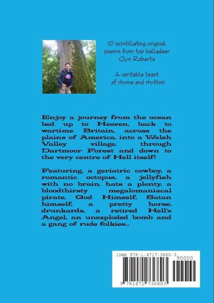 This is a collection of ten original modern folk ballads. All are satirical, tongue in cheek or just good fun! Diverse themes of love (especially for an octopus), getting old (especially for a cowboy), war from a child's point of view, money and fame, spiritual awareness and finding a way through the trials of the human condition, but always with humour. Parodies of Milton and Dante are here along with over-the-top pantomime and seaside postcard characters. It is a feast of rhyme and rhythm where the reader will enjoy a poetical journey from the ocean bed up to Heaven, back to wartime Britain, across the plains of America, into a Welsh Valley village, through Dartmoor Forest and down to the very center of Hell itself ! It features a geriatric cowboy, a romantic octopus, a jellyfish with no brain, hats a plenty, a bloodthirsty megalomaniacal pirate, God Himself, Satan himself, a pretty horse, drunkards, a retired Hell's Angel, an unexploded bomb and a gang of rude folkies...