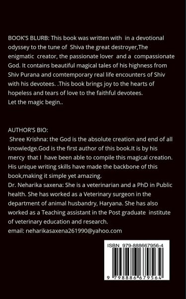 This book is a spiritual odyssey into the divine.Filled with magical drama into Lord Shiv's life,this book takes us on a journey into the stories of Shiv purana to the contemporary encounters with the great bieng. From the passionate story of Mahananda to the idealisr romantic Kanyakumari, the braveheart story of Battles fought. This book is a lover's tryst into his passion..and will make the reader fall in love again. It has a beautiful conclusion Always remember that love and life never ends..