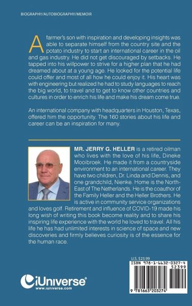 A farmers son with inspiration and developing insights was able to separate himself from the country site and the potato industry to start an international career in the oil and gas industry. He did not get discouraged by setbacks by tapping willpower from his strive for a higher plan he dreamed about at a young age and by looking for the potential life could offer and most of all how he could enjoy it. His hart was with engineering but realized he had to study languages to reach the big world, to travel and to get to know other countries and cultures in order to enrich his life and make his dream come true. An international company with headquarters in Houston Texas offered him the opportunity. The 160 stories about his life and career can be an inspiration for many.