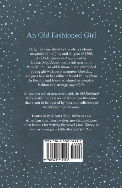 Originally serialised in the "Merry's Museum" magazine in the July and August of 1869, "An Old-Fashioned Girl" is a novel by Louisa May Alcott that revolves around Polly Milton, an old-fashioned and outmoded young girl with rural manners. One day, she goes to visit her affluent friend Fanny Shaw in the city and is overwhelmed by people's fashion and strange way of life. A timeless tale of new meets old, "An Old-Fashioned Girl" constitutes a classic of American literature that is not to be missed by fans and collectors of Alcott's wonderful work. Louisa May Alcott (1832 - 1888) was an American short story writer, novelist, and poet most famous for writing the novel "Little Women", as well as its sequels "Little Men" and "Jo's Boys". She grew up in New England and became associated with numerous notable intellectuals of her time, including Nathaniel Hawthorne, Ralph Waldo Emerson, Henry Wadsworth Longfellow, and Henry David Thoreau. Other notable works by this author include: "Eight Cousins" (1869) and "A Long Fatal Love Chase" (1875). Many vintage books such as this are becoming increasingly scarce and expensive. We are republishing this volume now in an affordable, modern, high-quality edition complete with the original text and artwork.