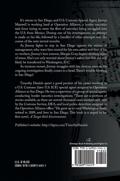 It's winter in San Diego, and U.S. Customs Special Agent Jimmy Maxwell is working hard at Operation Alliance, a border narcotics task force trying to stem the flow of narcotics being smuggled into the U.S. from Mexico. During one of his investigations, an attempt is made on his life, followed by a handful of other attempts over the course of the next several months. As Jimmy fights to stay in San Diego against the wishes of management, who want him moved for his own safety and that of his co-workers, Jimmy's love interest, Margie Gray, begins showing signs of stress. She's not only worried about Jimmy's safety, but that she will likely be transferred to Washington, D.C. As tensions mount, Jimmy struggles with his choices, even as the ongoing investigation finally comes to a head. There's trouble brewing in San Diego! Timothy Daniels spent a good portion of his career working as a U.S. Customs (later U.S. ICE) special agent assigned to Operation Alliance in San Diego. He was a supervisor of a group of special agents conducting border narcotics investigations. "There are a plethora of stories available, as there are several thousand cases worked each year by the Customs Service, DEA, and local police detectives assigned to the Operation Alliance office." He grew up in rural Washington State, retired in 2009, and lives in San Diego. This book is a sequel to his first novel, A Target Rich Environment.. Publisher's website: http://sbpra.com/TimothyDaniels