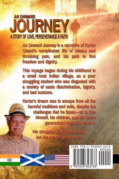 An Onward Journey is a narrative of Kartar Chand's complicated life of misery and throbbing pain, and his path to find freedom and dignity. This voyage began during his childhood in a small rural Indian village, as a poor struggling student who was disgusted with a society of caste discrimination, bigotry, and bad customs. Kartar's dream was to escape from all the harmful traditions and evils, despite the challenges that he faced - all to free himself, his children, and his future generations from this slavery. His struggles may have ended, but his memoir will live on.