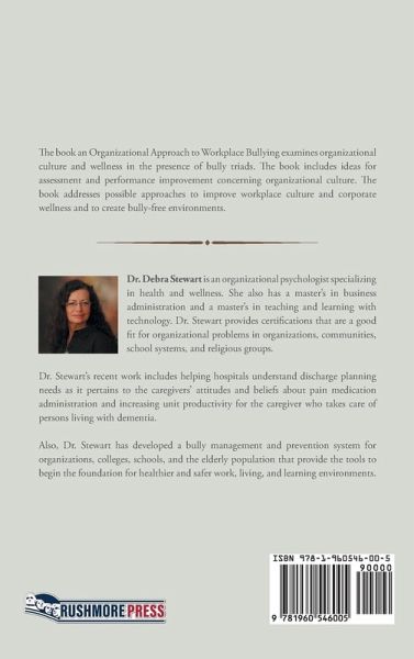 The book an Organizational Approach to Workplace Bullying examines organizational culture and wellness in the presence of bully triads. The book includes ideas for assessment and performance improvement concerning organizational culture. The book addresses possible approaches to improve workplace culture and corporate wellness and to create bully-free environments.