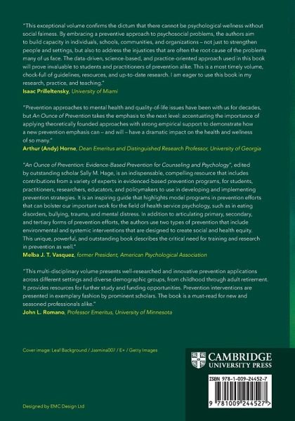 This book addresses the need for evidence-based models of prevention and health promotion programs for psychologists. It contains numerous practical and culturally informed suggestions, tools, and case examples from across the lifespan. Intended for mental health practitioners, researchers, educators, and policymakers.