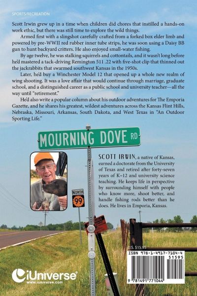 Scott Irwin grew up in a time when children did chores that instilled a hands-on work ethic, but there was still time to explore the wild things. Armed first with a slingshot carefully crafted from a forked box elder limb and powered by pre-WWII red rubber inner tube strips, he was soon using a Daisy BB gun to hunt backyard critters. He also enjoyed small-water fishing. By age twelve, he was stalking squirrels and cottontails, and it wasn't long before he'd mastered a tack-driving Remington 511 .22 with five-shot clip that thinned out the jackrabbits that swarmed southwest Kansas in the 1950s. Later, he'd buy a Winchester Model 12 that opened up a whole new realm of wing shooting. It was a love affair that would continue through marriage, graduate school, and a distinguished career as a public school and university teacher-all the way until "retirement." He'd also write a popular column about his outdoor adventures for The Emporia Gazette, and he shares his greatest, wildest adventures across the Kansas Flint Hills, Nebraska, Missouri, Arkansas, South Dakota, and West Texas in "An Outdoor Sporting Life."