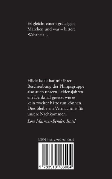 Am 6. Oktober 1910 kommt Hilde Isaak in einem jüdischen Elternhaus zur Welt, in Leverkusen wie auch ihre Schwestern Ruth, Johanna und Grete. Sie arbeitet im Haushaltswarengeschäft ihres Vaters bis zu ihrer Emigration nach Amsterdam im Jahre 1937. Nachdem Hitler 1940 die neutralen Niederlande überfallen hat, nimmt das Unglück seinen Lauf. Hilde Isaak wird von den Deutschen ins Konzentrationslager Vught zur Zwangsarbeit gebracht. Dies ist der Ausgangspunkt einer tragischen Odyssee durch zahlreiche Konzentrations- und Arbeitslager. Ihr Glück im Unglück war, dass sie gemeinsam mit Hunderten anderen für die Firma Philips kriegsrelevante Produkte (u.a. Radioröhren) fertigen musste. Hilde Isaaks Manuskript wie auch die Texte der anderen Autorinnen in diesem Buch belegen, dass durch das mutige Engagement und durch wiederholte Interventionen der niederländischen Philips-Mitarbeiter ein großer Teil dieser Zwangsarbeiter, der so genannten "Philipsgruppe", überlebt hat.