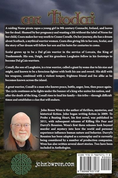 A raiding Norse pirate rapes a young girl in 9th century Connacht, Ireland, and leaves her for dead. Shamed by her pregnancy and wanting a life without the label of Norse for her child, Ceara makes her way south to Ceann Coradh. On her journey, she has a dream about Scathach, a mythical warrior woman. Ceara dies giving life to her son, Scolai, and the story of her dream will follow her son and his heirs for centuries to come. Scolai grows up to be a Dal gCais warrior in the service of Lorcain, the King of Tuadmumuh. His son, Daigh, and his grandson Laoghaire follow in his footsteps to become Dal gCais warriors. Conall, the son of Laoghaire, is a true warrior, called a giant by some due to his size and might, and known to be a ferocious fighter with both his axe and sword. His skill with his weapons, combined with a violent temper, frightens friend and foe alike as he becomes known across the island. A great warrior, Conall is a man who knows peace, battle, anger, loss, then peace again. The cycle continues as he fights under the banner of a king who unites his nation, and after the death of the king, Conall rises to lead his family-his tribe-through difficult times and establishes a clan that will endure.