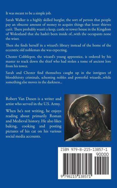 It was meant to be a simple job. Sarah Walker is a highly skilled burglar, the sort of person that people pay an obscene amount of money to acquire things that lesser thieves can't. There probably wasn't a keep, castle or tower house in the Kingdom of Wolestland that she hadn't been inside of...with the occupants none the wiser. Then she finds herself in a wizard's library instead of the home of the eccentric old nobleman she was expecting. Chester Cobblepot, the wizard's young apprentice, is ordered by his master to track down the thief who had stolen a tome of ancient lore from his tower. Sarah and Chester find themselves caught up in the intrigues of bloodthirsty criminals, scheming nobles and powerful wizards...while something else moves in the darkness...