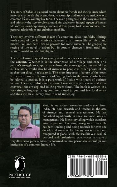 The story of Suhanto is a social drama about his friends and their journey involves an acute display of emotions, relationships and imperative intricacies of a common life in a country like India. The main protagonist in the story is Suhanto and primarily the story revolves around him and covers integral aspects of human life such as friendship, struggle, success, defeat, giving back, compromises, inter personal relationships and culmination of life. The story involves different shades of a common life as it unfolds. It brings forth some of the imperatives challenges of a human life at micro and macro level and even tries to provide for some answers. The geographic setting of the novel is urban but important characters from rural and western world are also highlighted. The novel would appeal to young readers as they can relate to most of the content. Whether it is the description of a village ambience or a person's struggle to adapt urban culture, the young generation would like it. Also, there are segments in the novel for people in other phases of life, to which they can also relate. The most important feature of the novel is the inclusion of the concept of 'giving back to the society' which can be related to masses. It is a pure work of fiction with traces of business fiction. The story unfolds in the form of narration of past events and some conversations are depicted in the present times. The book is written in a very simple language using commonly used jargon and few local terms and thus will be a literary treat to read and enjoy.