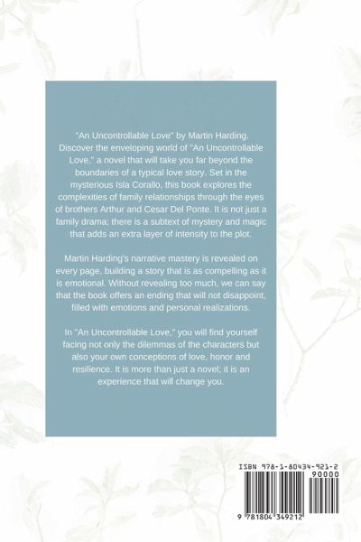 "An Uncontrollable Love" by Martin Harding. Discover the enveloping world of "An Uncontrollable Love," a novel that will take you far beyond the boundaries of a typical love story. Set in mysterious Isla Corallo, this book explores the complexities of family relationships through the eyes of brothers Arthur and Cesar Del Ponte. It is not just a family drama; there is a subtext of mystery and magic that adds an extra layer of intensity to the plot. Martin Harding's narrative mastery is revealed on every page, building a story that is as compelling as it is emotional. Without revealing too much, we can say that the book offers an ending that will not disappoint, filled with emotions and personal realizations. In "An Uncontrollable Love," you will face not only the dilemmas of the characters but also your own conceptions of love, honor and resilience. It is more than just a novel; it is an experience that will change you.