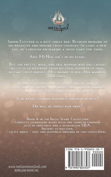 New York Times bestselling author Melanie Moreland delivers a heartwarming story of second-chance at love for a single dad. Simon Fletcher is a busy single dad. Between bringing up his daughter and moving cross-country to start a new life, he's focused on making a fresh start for them. Amy McNeil isn't in his plans. But the pretty, wild, and free woman who has caught his eye is so different from his cold, removed ex-wife, he can't help himself. He's drawn to her. Her warmth. Her light. When he discovers she is everything he wants, everything he needs-and more-how will he handle this unexpected second chance at love? Is he ready to grab happiness and run with it? Or will he simply run away? What is Insta-Spark? Book #6 of the Insta-Spark collection. Complete standalone reads with one thing in common - lots of sweetness and a guaranteed HEA. Instant attraction, little angst - love and happiness abounds in this collection.
