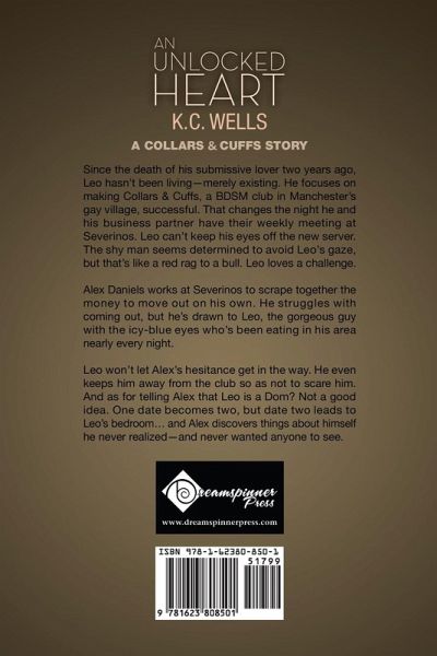 Collars and Cuffs: Book One Since the death of his submissive lover two years ago, Leo hasn't been living-merely existing. He focuses on making Collars & Cuffs, a BDSM club in Manchester's gay village, successful. That changes the night he and his business partner have their weekly meeting at Severinos. Leo can't keep his eyes off the new server. The shy man seems determined to avoid Leo's gaze, but that's like a red rag to a bull. Leo loves a challenge. Alex Daniels works at Severinos to scrape together the money to move out on his own. He struggles with coming out, but he's drawn to Leo, the gorgeous guy with the icy-blue eyes who's been eating in his area nearly every night. Leo won't let Alex's hesitance get in the way. He even keeps him away from the club so as not to scare him. And as for telling Alex that Leo is a Dom? Not a good idea. One date becomes two, but date two leads to Leo's bedroom... and Alex discovers things about himself he never realized-and never wanted anyone to see.