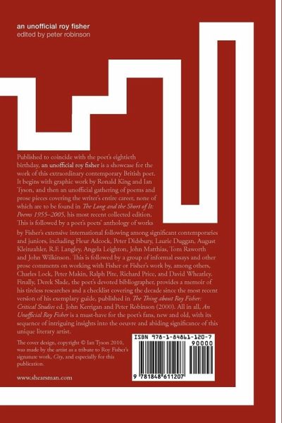 Published to coincide with the poet's eightieth birthday, An Unofficial Roy Fisher is a showcase for the work of this extraordinary contemporary British poet. It begins with an unofficial gathering of poems and prose pieces covering the writer's entire career, none of which are to be found in The Long and the Short of It: Poems 1955-2005, his most recent collected edition. This is followed by a poet's poets' anthology of works by Fisher's extensive international following among significant contemporaries and juniors, including Fleur Adcock, Peter Didsbury, Laurie Duggan, August Kleinzahler, R.F. Langley, Angela Leighton, John Matthias, Tom Raworth and John Wilkinson. This is followed by a group of informal essays and other prose comments on working with Fisher or Fisher's work by, among others, Charles Lock, Peter Makin, Ralph Pite, Richard Price, and David Wheatley. All in all, An Unofficial Roy Fisher is a must-have for the poet's fans, new and old, with its sequence of intriguing insights into the oeuvre and abiding significance of this unique literary artist.