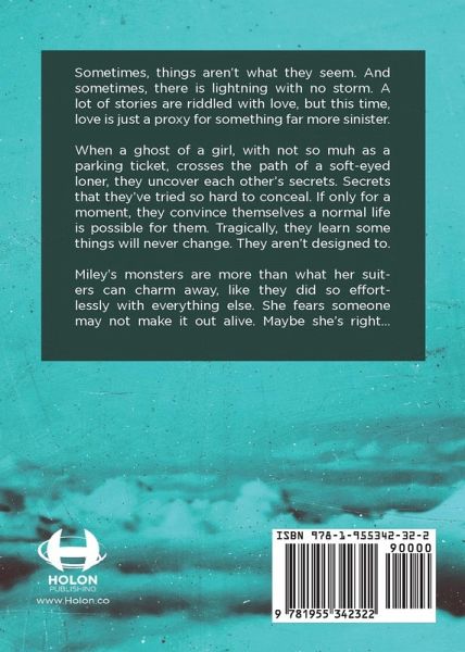 Sometimes, things aren't what they seem. And sometimes, there is lightning with no storm. A lot of stories are riddled with love, but this time, love is just a proxy for something far more sinister. When a ghost of a girl, with not so much as a parking ticket, crosses the path of a soft-eyed loner, they uncover each other's secrets. Secrets that they've tried so hard to conceal. If only for a moment, they convince themselves a normal life is possible for them. Tragically, they learn some things will never change. They aren't designed to. Miley's monsters are more than what her suitors can charm away, like they did so effortlessly with everything else. She fears someone may not make it out alive. Maybe she's right...