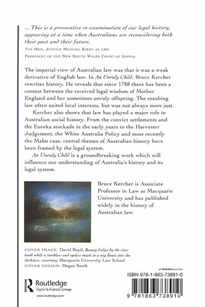 'This is a provocative re-examination of our legal history appearing at a time when Australians are reconsidering both their past and their future.' - The Hon. Justice Michael Kirby AC CMG, President of the New South Wales Court of Appeal The imperial view of Australian law was that it was a weak derivative of English law. In An Unruly Child, Bruce Kercher rewrites history. He reveals that since 1788 there has been a contest between the received legal wisdom of Mother England and her sometimes unruly offspring. The resulting law often suited local interests, but was not always more just. Kercher also shows that law has played a major role in Australian social history. From the convict settlements and the Eureka stockade in the early years to the Harvester Judgement, the White Australia Policy and most recently the Mabo case, central themes of Australian history have been framed by the legal system. An Unruly Child is a groundbreaking work which will influence our understanding of Australia's history and its legal system.
