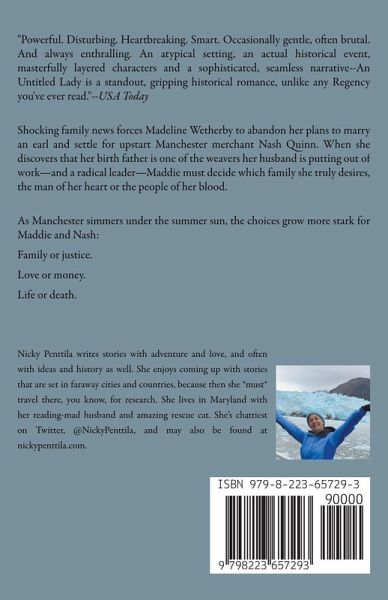 "Powerful. Disturbing. Heartbreaking. Smart. Occasionally gentle, often brutal. And always enthralling. An atypical setting, an actual historical event, masterfully layered characters and a sophisticated, seamless narrative -- An Untitled Lady is a standout, gripping historical romance, unlike any Regency you've ever read."--USA Today "The social turmoil in Manchester leading to the Peterloo Massacre of 1819 is the unusual setting for Penttila's quietly stunning, memorable debut novel. A very highly recommended book."--Historical Novel Society Shocking family news forces Madeline Wetherby to abandon her plans to marry an earl and settle for upstart Manchester merchant Nash Quinn. When she discovers that her birth father is one of the weavers her husband is putting out of work-and a radical leader-Maddie must decide which family she truly desires, the man of her heart or the people of her blood. As Manchester simmers under the summer sun, the choices grow more stark for Maddie and Nash: Family or justice. Love or money. Life or death.