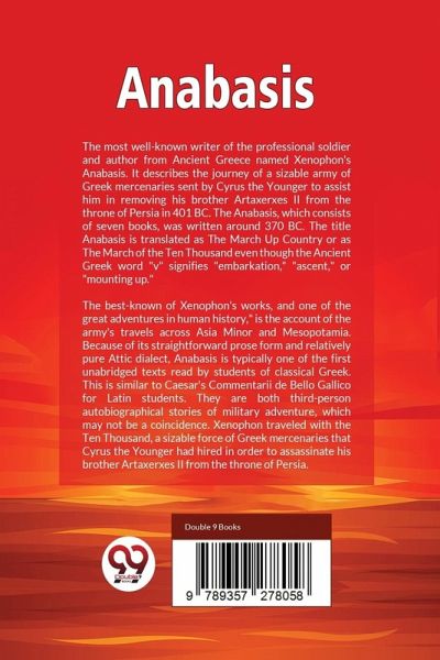 The most well-known writer of the professional soldier and author from Ancient Greece named Xenophon's Anabasis. It describes the journey of a sizable army of Greek mercenaries sent by Cyrus the Younger to assist him in removing his brother Artaxerxes II from the throne of Persia in 401 BC. The Anabasis, which consists of seven books, was written around 370 BC. The title Anabasis is translated as The March Up Country or as The March of the Ten Thousand even though the Ancient Greek word "v" signifies "embarkation," "ascent," or "mounting up." The best-known of Xenophon's works, and one of the…mehr
