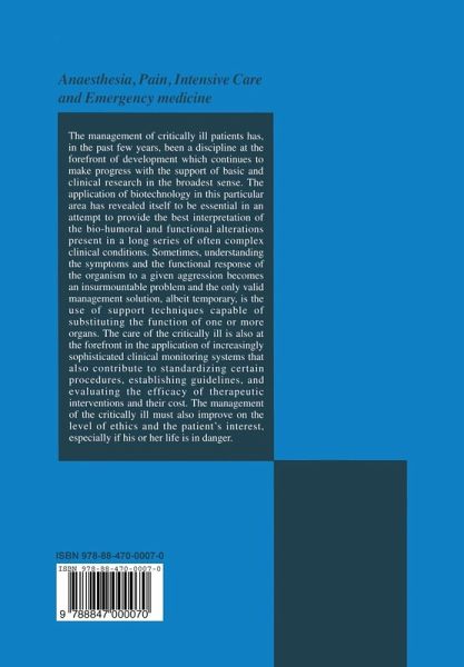 The management of critically ill patients has,in the past few years, been a discipline at the forefront of development which continues to make progress with the support of basic and clinical research in the broadest sense. The application of biotechnology in this particular area has revealed itself to be essential in an attempt to provide the best interpretation of the bio-humoral and functional alterations present in a long series of often complex clinical conditions. The care of the critically ill is also at the forefront in the application of increasingly sophisticated clinical monitoring…mehr