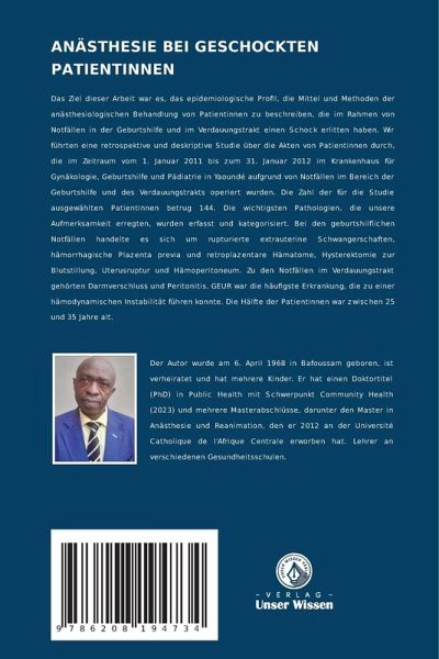 Das Ziel dieser Arbeit war es, das epidemiologische Profil, die Mittel und Methoden der anästhesiologischen Behandlung von Patientinnen zu beschreiben, die im Rahmen von Notfällen in der Geburtshilfe und im Verdauungstrakt einen Schock erlitten haben. Wir führten eine retrospektive und deskriptive Studie über die Akten von Patientinnen durch, die im Zeitraum vom 1. Januar 2011 bis zum 31. Januar 2012 im Krankenhaus für Gynäkologie, Geburtshilfe und Pädiatrie in Yaoundé aufgrund von Notfällen im Bereich der Geburtshilfe und des Verdauungstrakts operiert wurden. Die Zahl der für die Studie ausgewählten Patientinnen betrug 144. Die wichtigsten Pathologien, die unsere Aufmerksamkeit erregten, wurden erfasst und kategorisiert. Bei den geburtshilflichen Notfällen handelte es sich um rupturierte extrauterine Schwangerschaften, hämorrhagische Plazenta previa und retroplazentare Hämatome, Hysterektomie zur Blutstillung, Uterusruptur und Hämoperitoneum. Zu den Notfällen im Verdauungstrakt gehörten Darmverschluss und Peritonitis. GEUR war die häufigste Erkrankung, die zu einer hämodynamischen Instabilität führen konnte. Die Hälfte der Patientinnen war zwischen 25 und 35 Jahre alt.