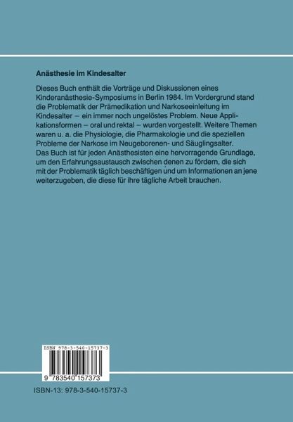 Die Anästhesie hat aufgrund intensiver Forschungstätigkeit ein hohes Maß an Sicherheit erreicht. Risiken birgt in sich noch der Patient mit schweren Vorerkrankungen und der Patient aus ex tremen Altersbereichen. Dazu zählt auch das Kindesalter und hier insbesondere das Frühgeborenen-, das Neugeborenen- und das Säuglings alter. Der Anästhesie im Kindesalter war deshalb Ende 1984 ein Symposium in Berlin gewidmet, das sich eines regen Zuspruchs erfreuen konnte. Es ging nicht nur um das noch ungeklärte Pro blem der Prämedikation im Kindesalter, vielmehr wurde ein breites Spektrum anästhesiologischer Fragen im Kindesalter an gesprochen und eingehend diskutiert. Kinderanästhesie - das bedeutet nicht Subspezialisierung in einer schon extrem spezialisierten Medizin. Dennoch sind Sym posien mit dieser Spezifizierung notwendig, um den Erfahrungs austausch zwischen denen zu fördern, die sich mit der Proble matik täglich beschäftigen, und um Informationen an jene wei terzugeben, die diese für ihre tägliche Arbeit brauchen. Die Veröffentlichung der Referate und der Diskussionsbei träge in diesem Buch soll dieser Informationsübermittlung die nen.