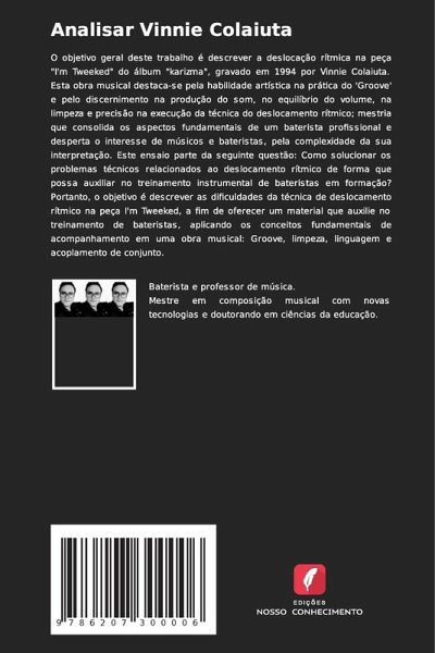O objetivo geral deste trabalho é descrever a deslocação rítmica na peça "I'm Tweeked" do álbum "karizma", gravado em 1994 por Vinnie Colaiuta. Esta obra musical destaca-se pela habilidade artística na prática do 'Groove' e pelo discernimento na produção do som, no equilíbrio do volume, na limpeza e precisão na execução da técnica do deslocamento rítmico; mestria que consolida os aspectos fundamentais de um baterista profissional e desperta o interesse de músicos e bateristas, pela complexidade da sua interpretação. Este ensaio parte da seguinte questão: Como solucionar os problemas técnicos relacionados ao deslocamento rítmico de forma que possa auxiliar no treinamento instrumental de bateristas em formação? Portanto, o objetivo é descrever as dificuldades da técnica de deslocamento rítmico na peça I'm Tweeked, a fim de oferecer um material que auxilie no treinamento de bateristas, aplicando os conceitos fundamentais de acompanhamento em uma obra musical: Groove, limpeza, linguagem e acoplamento de conjunto.